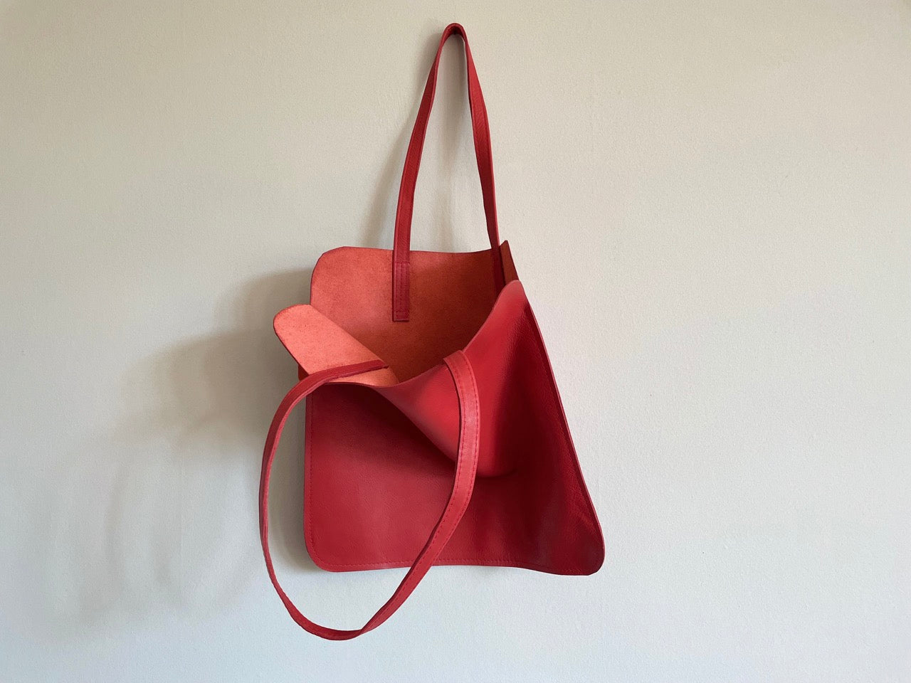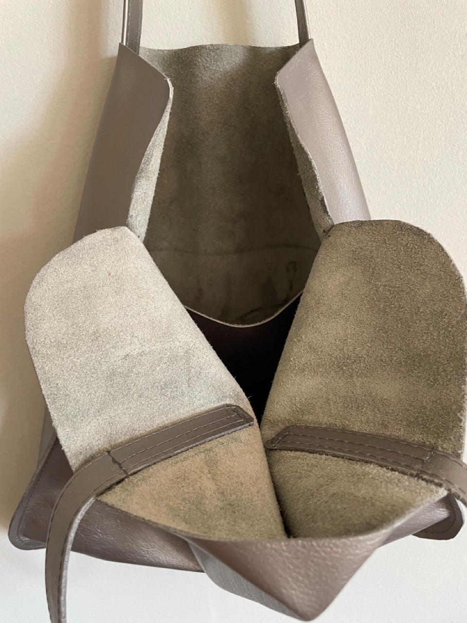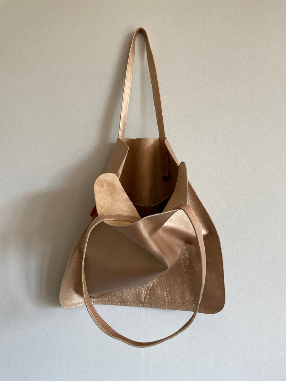 Handmade soft leather tote bag.