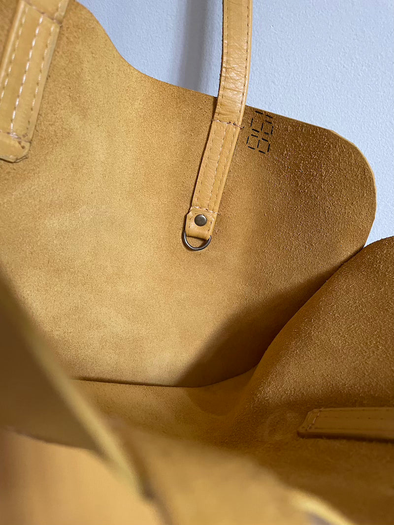 Handmade soft leather tote bag.