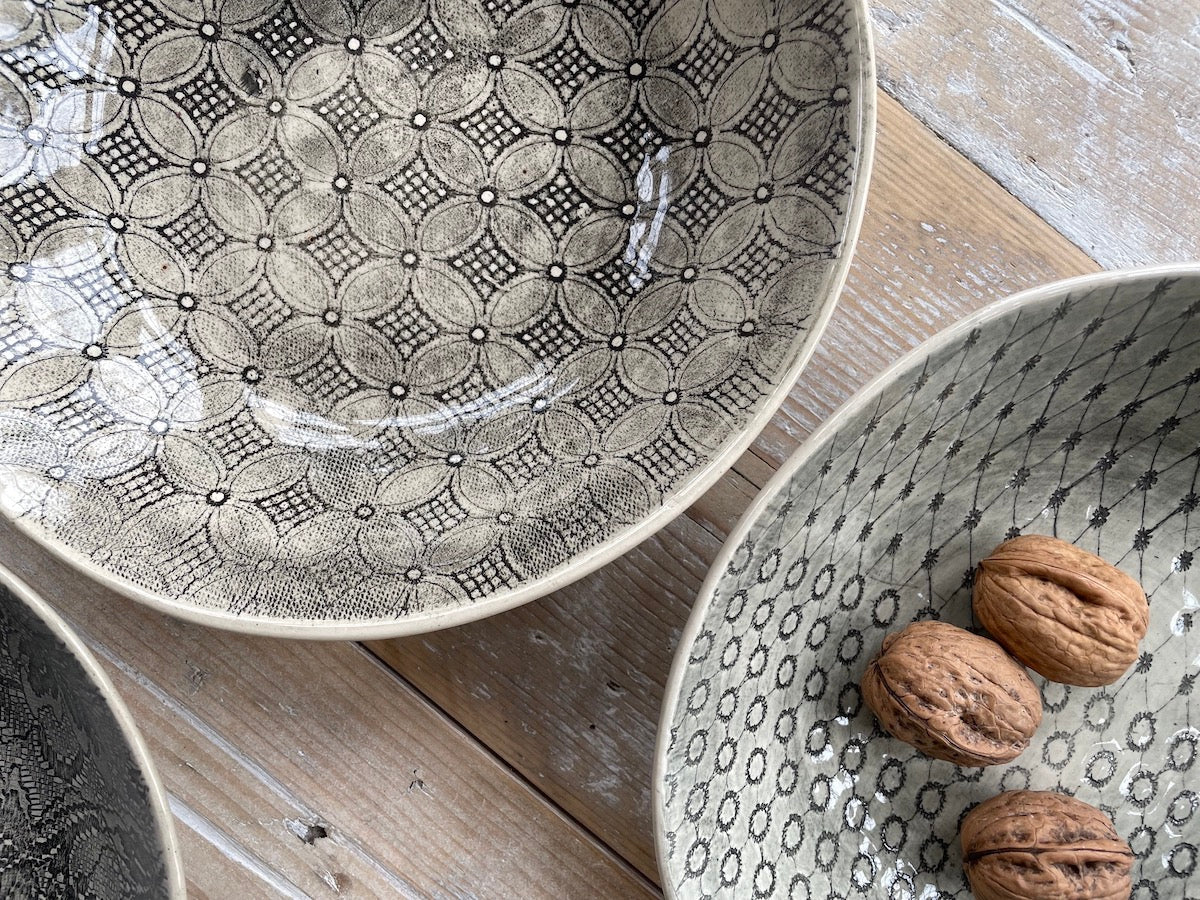 The Wonki Ware patterned dinner pieces are hand crafted by local artisans in the Western Cape of South Africa.