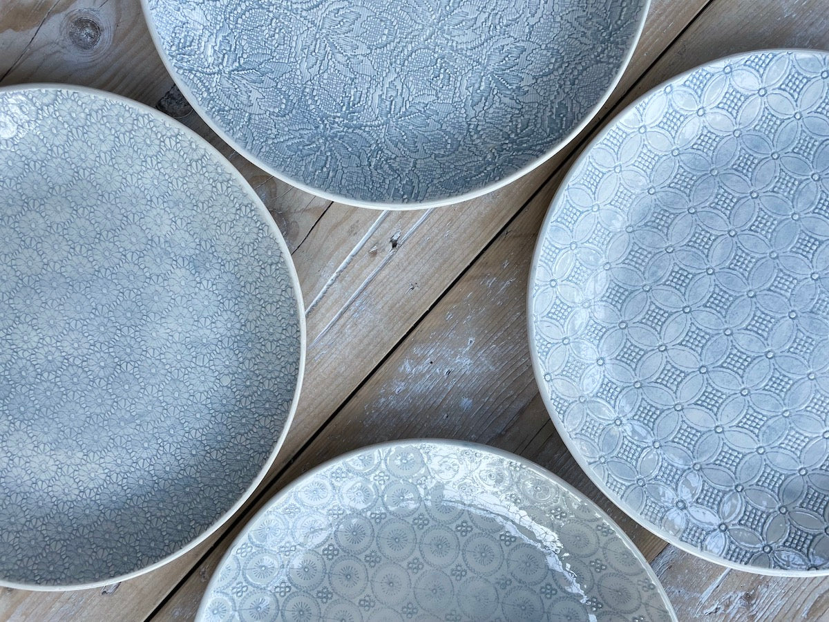 Set of 4 dinner plates - Duck Egg Patterned
