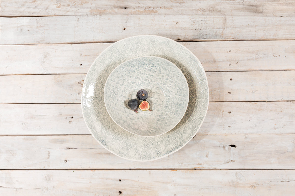 Wonki Ware Large Patterned Salad Bowl - Duck Egg Patterned